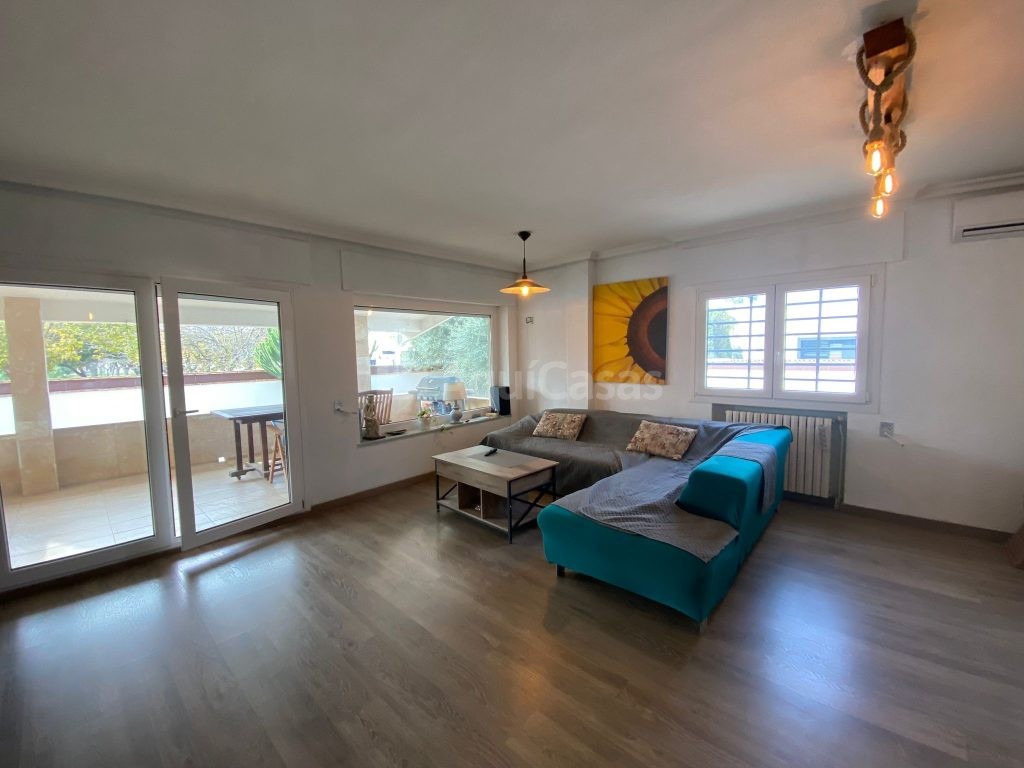 La vivienda, reformada recientemente, cuenta con un gran salón que se ilumina con luz natural gracias a sus amplios ventanales de PVC y un acceso directo al acogedor porche, con vistas despejadas a un parque.