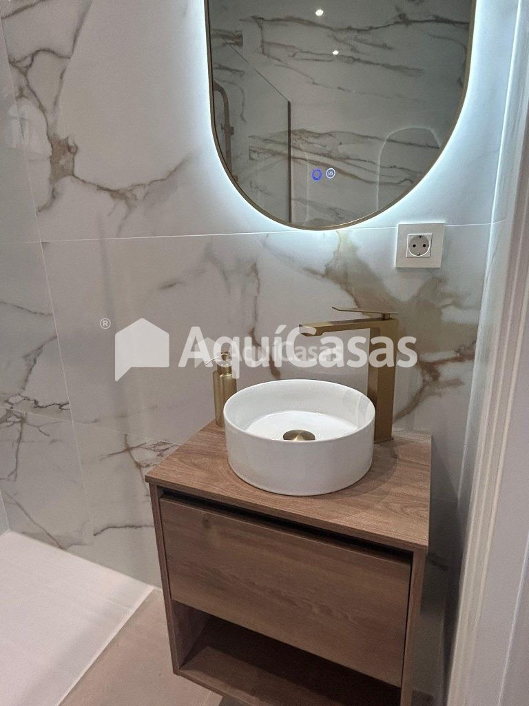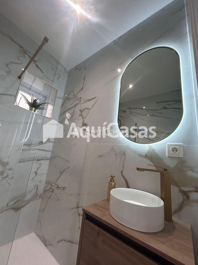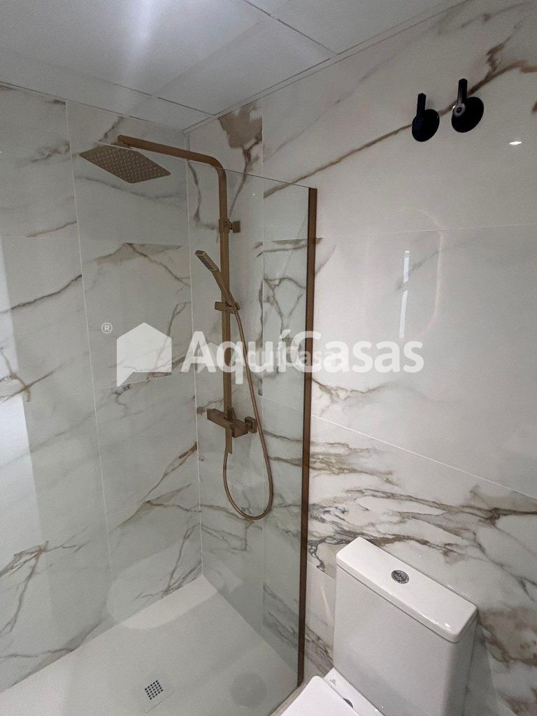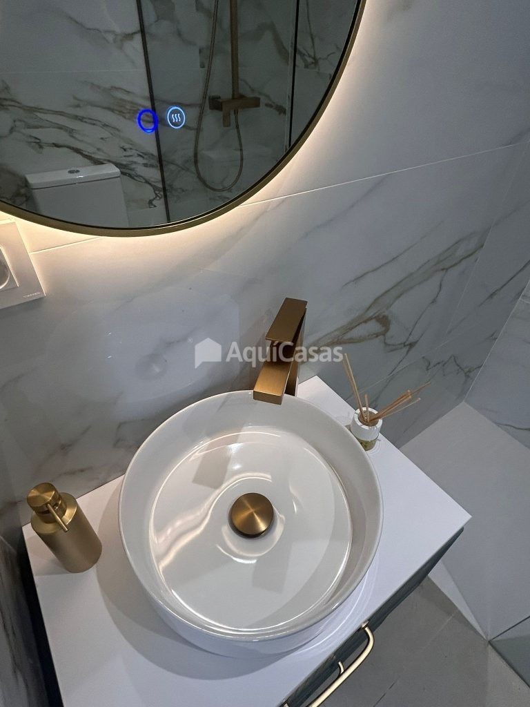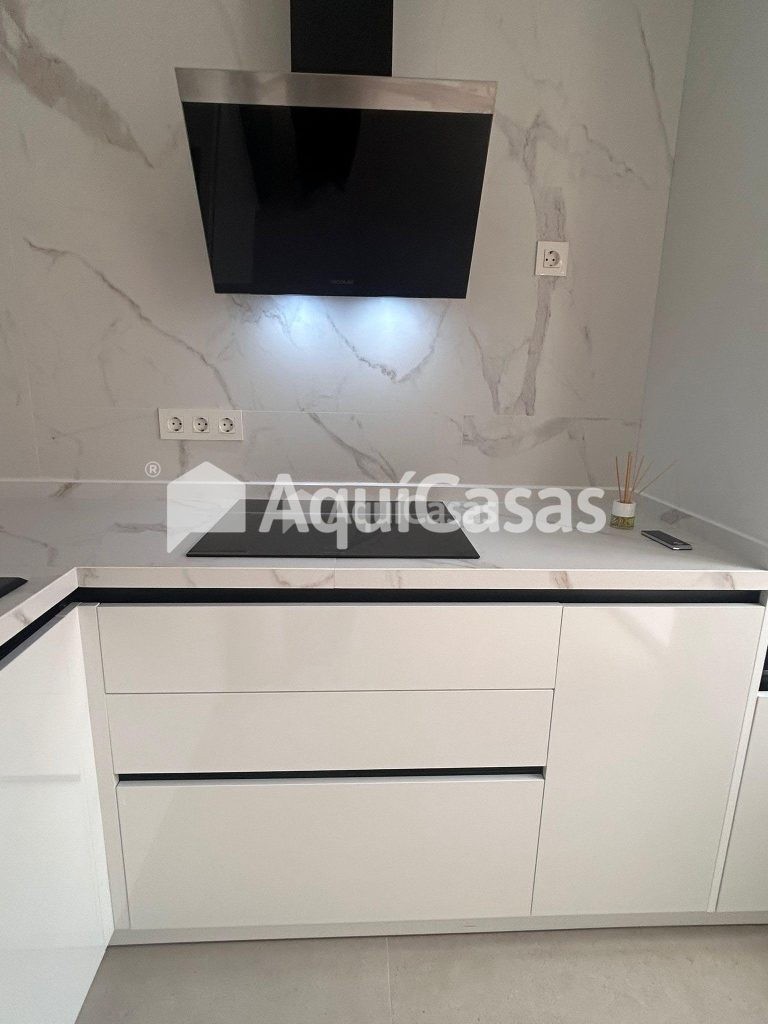 La cocina, totalmente equipada e integrada en el espacio principal, cuenta con encimera y revestimientos porcelánicos de gran formato, aportando una estética elegante y contemporánea.