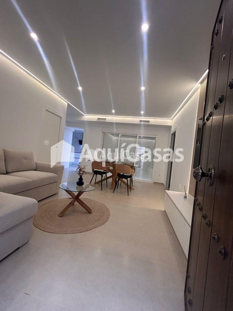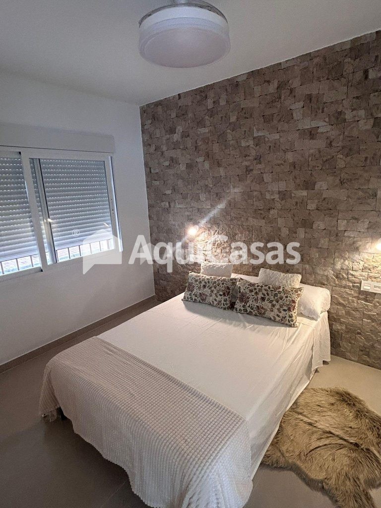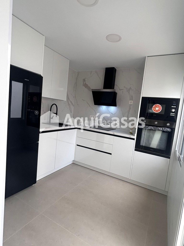 La vivienda se entrega totalmente amueblada y lista para entrar a vivir, con mobiliario moderno y electrodomésticos integrados: horno, vitrocerámica, campana extractora, frigorífico, lavavajillas, lavadora y un televisor de 65” en el salón principal.