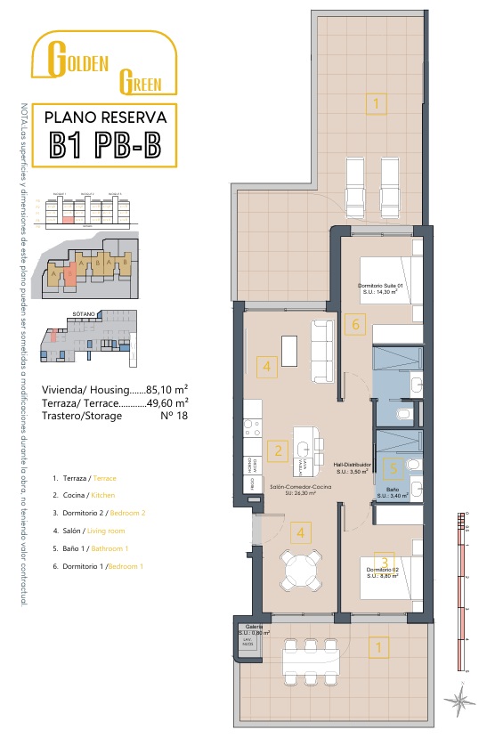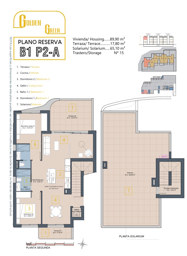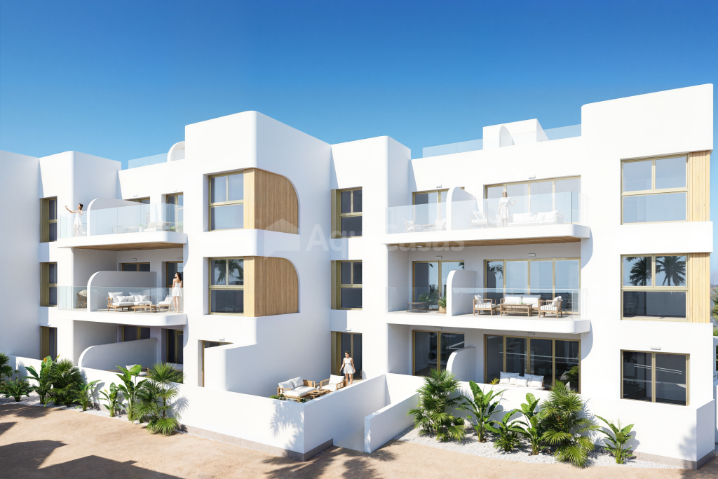 Destacan sus amplias terrazas orientadas a ambos lados de la vivienda, lo que favorece la ventilación cruzada y multiplica las perspectivas hacia el golf y el Mar Menor. Este diseño inteligente no solo mejora el confort interior, sino que enmarca cada momento del día con luz natural y vistas inolvidables.